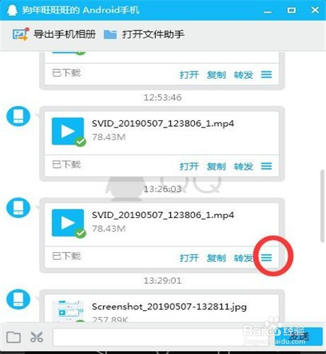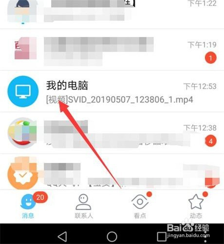 此时在电脑上会弹出如下窗口(注重前提是电脑上登录了与手机统一帐号的QQ)。鼠标移动到如下图所示列表图标上。