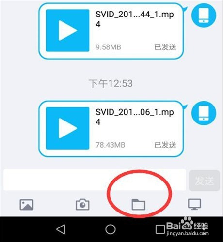 然后找到你所要传输的文件(可所以视频、图片或者文本等等),点击发送。