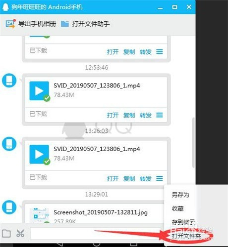这样就可以在电脑上看获得你所传过来的文件了。