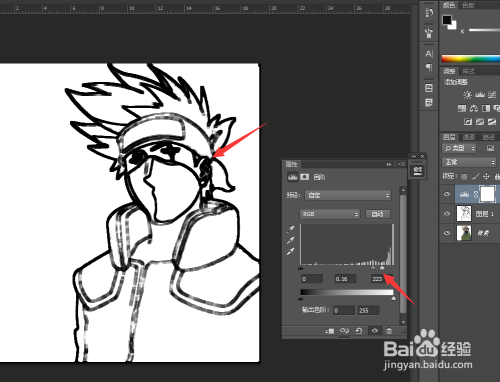 接着我们利用色阶东西,将图片的颜色更为集中,让黑色加倍较着。