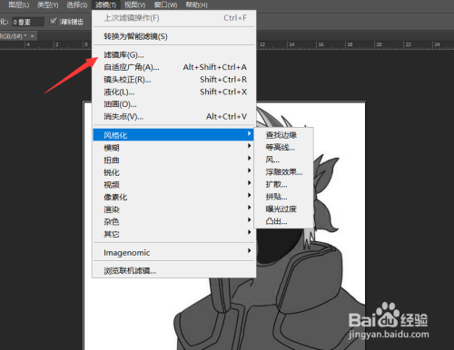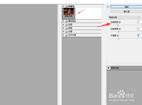选择滤镜库之后,我们点击上方的选项气概化,然后设置边缘宽度为4,边缘亮度为5即可,然后点击确定。