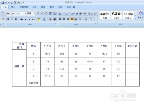 打开带稀有据表格的Word文档