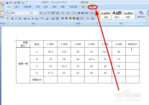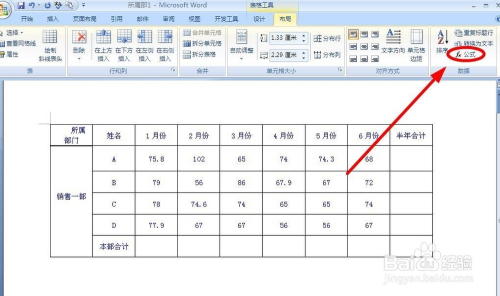将鼠标定位在要插入公式的单位格中,在“表格东西”栏中,找到并单击“结构”选项卡;