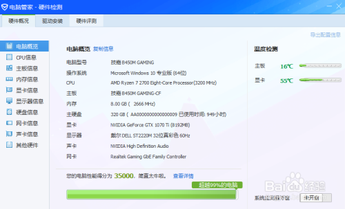 2、单击具体的类目查询具体信息如:硬件健康,处置器信息,本家儿板信息,内存信息,硬盘信息,显卡信息,显示器信息,电池信息等。