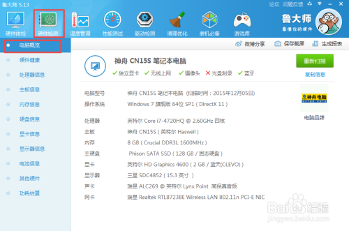 第三步:打开鲁巨匠检测电脑硬件设置装备摆设。