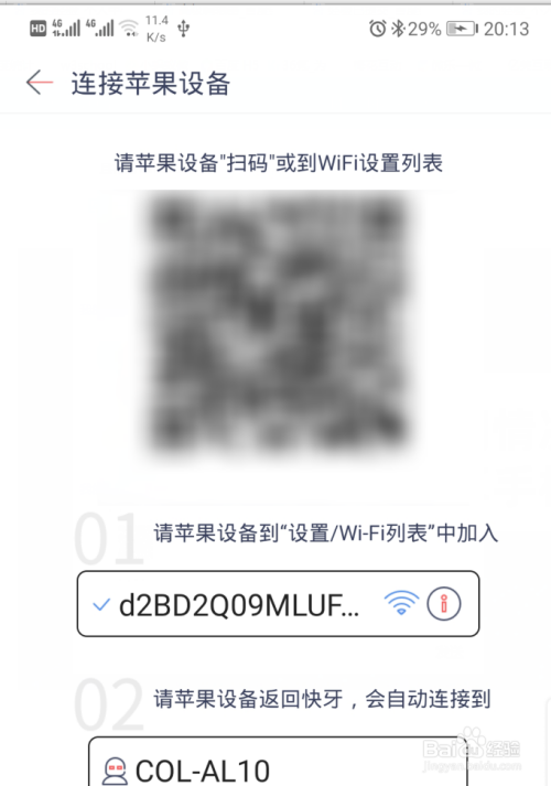 点击后,页面会呈现毗连苹果设备的二维码,打开苹果手机的快牙应用。
