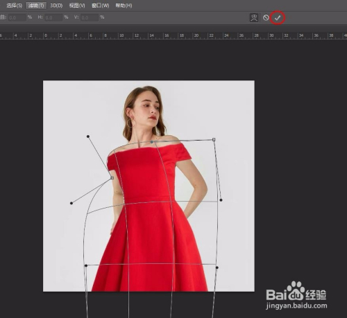 第八步:将号衣调整至与人物相贴合,单击上方“√”。