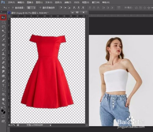 第六步:在左侧东西栏中选择“移动东西”,将号衣移动至人物图片中。