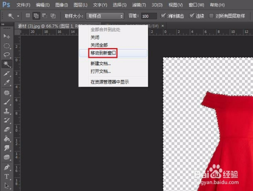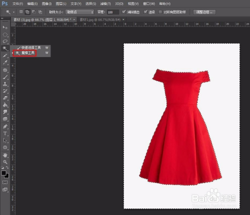 第三步:在左侧东西栏中选择“魔棒东西”,选中号衣图片中的布景区域。