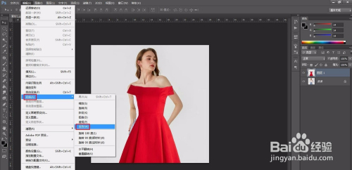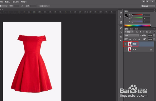 第二步:进步前辈施礼服抠图操作,按Ctrl+J键复制号衣布景图层。