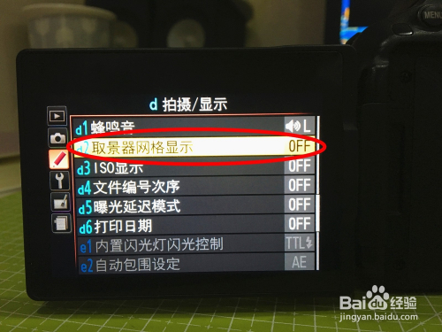 将OFF切换到ON设置完当作,此时退出菜单进行拍摄,取景器就能看到网格了。