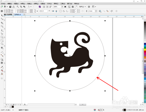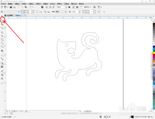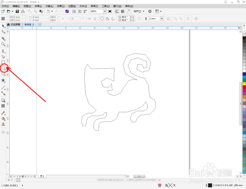 点击【钢笔东西】,在作图区域绘制一个生肖虎大致轮廓的多边图案。点击【卵形东西】,绘制出一个圆形图案,作为眼睛图案(如图所示);