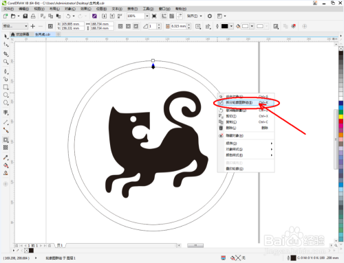 点击【卵形东西】,在作图区域绘制一个圆框。点击【轮廓图】对圆形图案进行轮廓后,点击鼠标右键-【拆分轮廓图群组】,将两个图案拆分并别离设置好圆框的轮廓宽度。这样我们整个生肖虎图标便全数建造完当作。