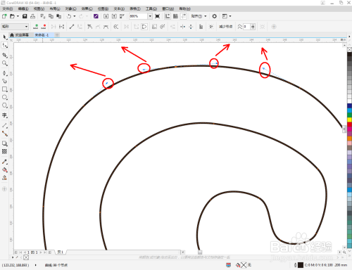 选中多边图案,点击【外形东西】,选中图案上的所有点,点击【转换为曲线】将图案转曲后,按图示调整节制点,完当作整个生肖虎轮廓图案的绘制(如图所示);