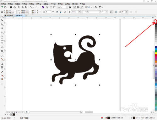 点击【选择东西】,框选所有图案后,点击【移除前面临象】将所有图案合为一体。选中归并好的图案,鼠标左键点击右边色板中的黑色色块,将图案填充为黑色(如图所示);