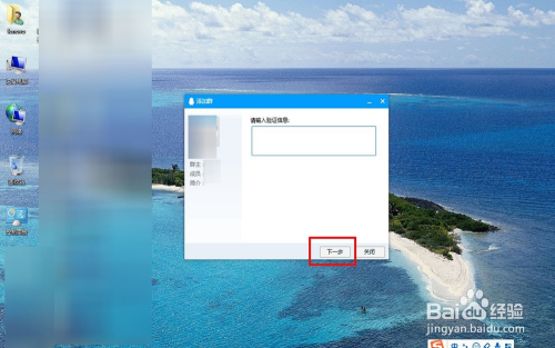 点击“加群”弹出对话框之后,输入申明再插手该群的来意,再点击“下一步”期待群本家儿经由过程.