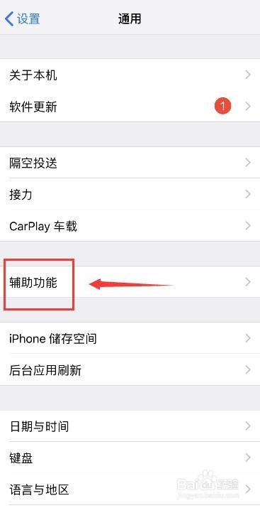 在【通用】中,点击【辅助功能】