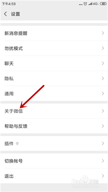 这样打开设置界面后点击【关于微信】。