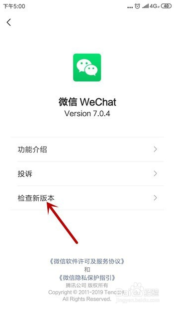 看到了查抄新版本后点击进行查抄,然后更新微信至最新版本。