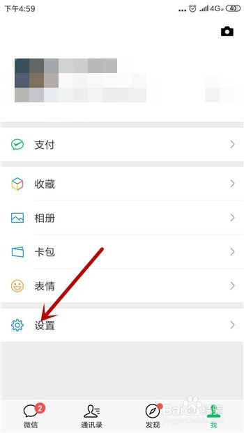 然后会打开微信的小我本家儿页,我们需要点击此中的【设置】。