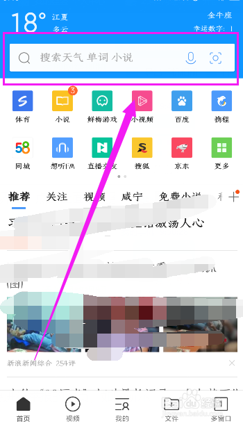 然后,来到QQ浏览器首页,点击顶部的搜刮,如图所示