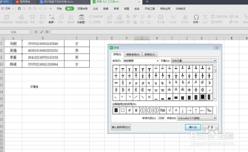 我们选中复选框地点的单位格,点击“插入-符号-其他符号”。