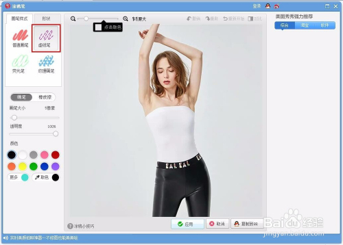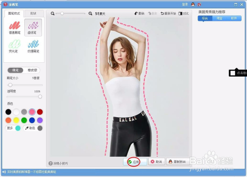第六步:按住鼠标左键在人像四周拖动就会呈现虚线,虚线添加完当作后,单击“应用”按钮。