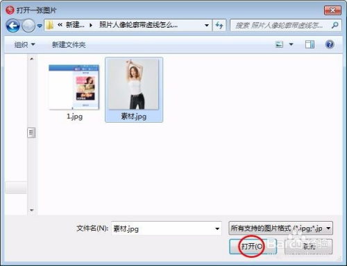 第二步:选择一张需要在四周加虚线的照片,单击“打开”按钮。