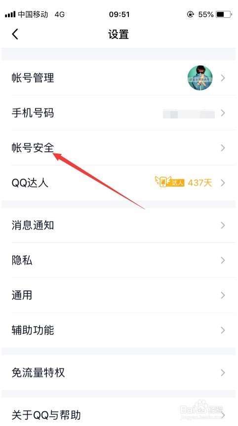 进入qq的系统功能设置之后,选择“账号平安”,可以对qq账号进行设置,如图所示。