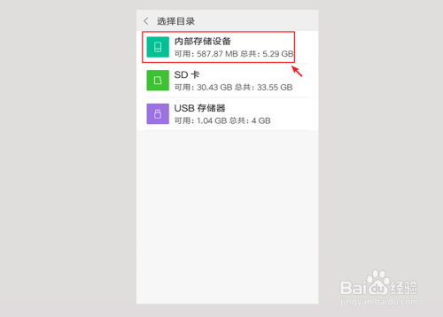进入选择目次,可以选择手机存储设备。