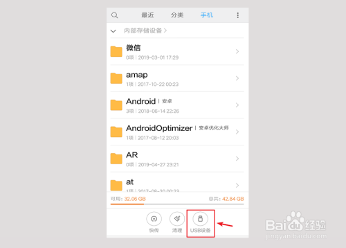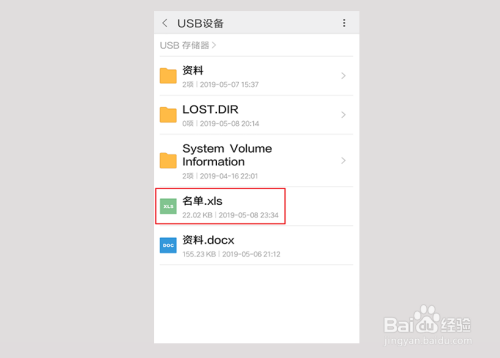 进入手机页面,就可以看到USB设备,这就是OTG数据线毗连的U盘,点击它。