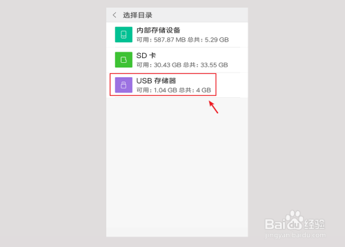 进入选中目次,点击【USB存储器】。