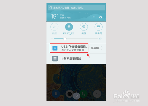 用OTG数据线当作功毗连后,通知栏会呈现以下页面,点击进入文件办理器,或者也可以直接点击手机的“文件办理”。