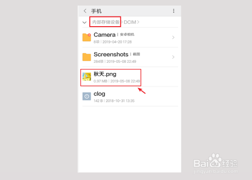 这样我们就可以从手机的存储中,看到适才剪切的文件了。