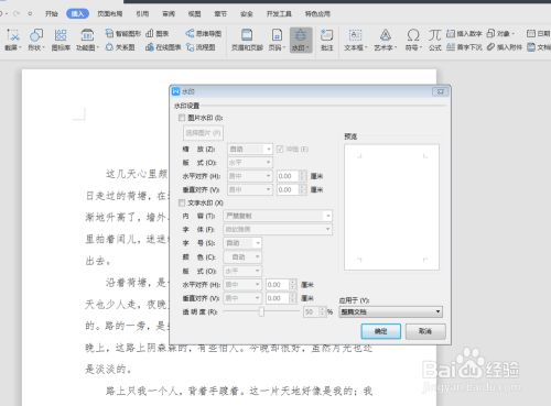 这样就弹出水印设置对话框了,我们就可以进行响应的设置了。