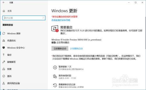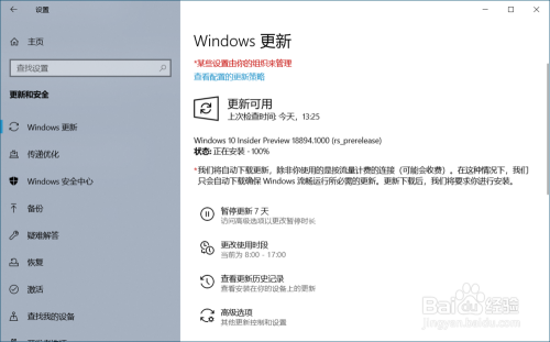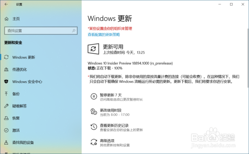 第二步:▷ 第 1 次 ◁ 重启后,运行 Windows10 Insider Preview 18894.1000 (rs_prerelease)版系统更新