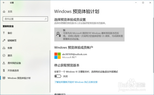 在 更新和平安 - Windows 预览体验打算窗口中,将 选择预览体验当作员设置 设置为【快】。