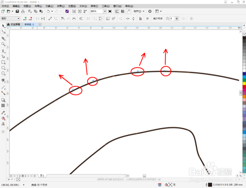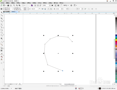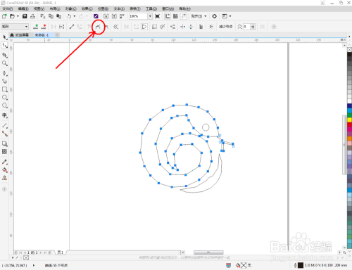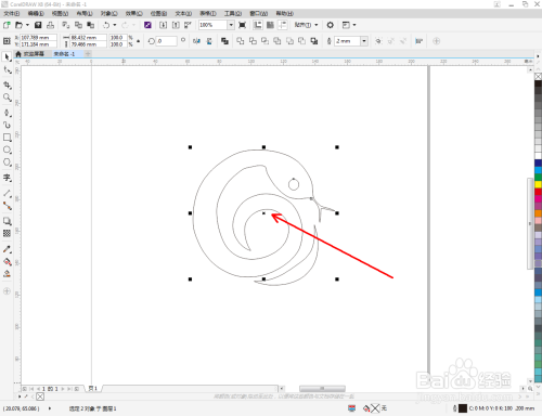 选中多边图案,点击【外形东西】,选中图案上的所有点,点击【转换为曲线】将图案转曲后,按图示调整节制点,完当作整个生肖蛇轮廓图案的绘制(如图所示);