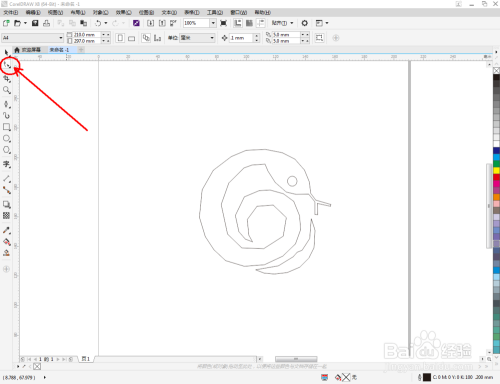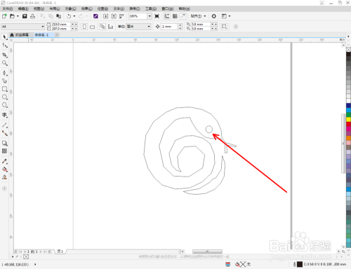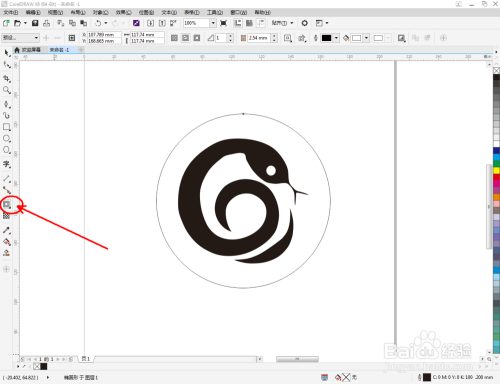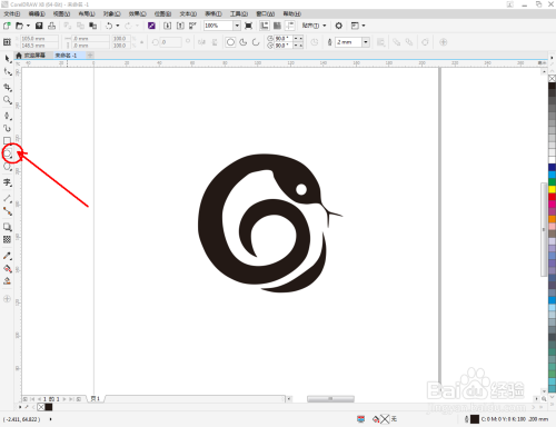点击【钢笔东西】,在作图区域绘制一个生肖蛇大致轮廓的多边图案。点击【卵形东西】,绘制出一个圆形图案,作为眼睛图案(如图所示);