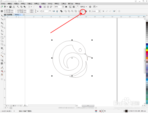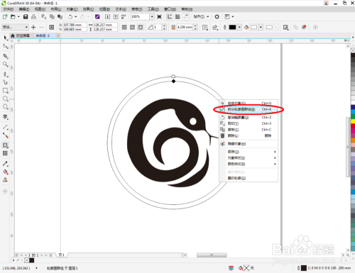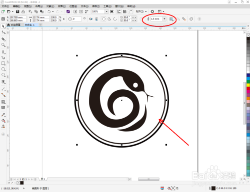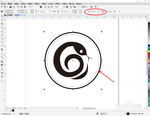 点击【卵形东西】,在作图区域绘制一个圆框。点击【轮廓图】对圆形图案进行轮廓后,点击鼠标右键-【拆分轮廓图群组】,将两个图案拆分并别离设置好圆框的轮廓宽度。这样我们整个生肖蛇图标便全数建造完当作。