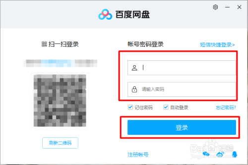 下载完当作后,呈现百度网盘登录页面,输入账号密码后,点击登录即可