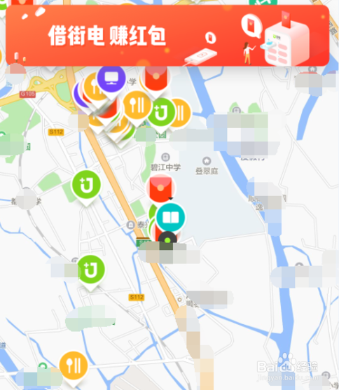 6、进入街电地图界面,找附件的街电位置,如图所示。