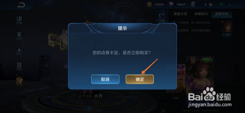 点券充沛的小伙伴可以直接采办,没有点券的系统会提醒“点券不足”,点击箭头处“确定”即可。