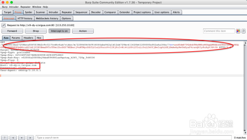 然后打开抖音,我们刷一条抖音。在burp中就截获了抖音视频的真实地址。