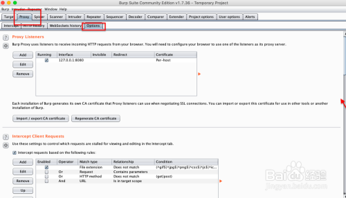 首先打开burpsuit,进入proxy>>option进行代办署理设置装备摆设。