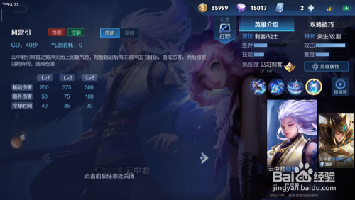 弄法建议:建议作为打野位,无视地形可以让他在野区穿行,无视地形让云中君的gank也很强,打团时背工入团打输出。