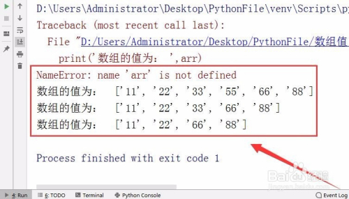 运行程序,其成果如下图所示,可以看到删除整个数组后,数组就不存在了。