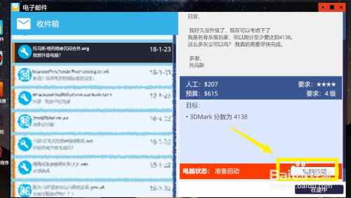第一步,我们进入装进模拟器游戏之后,找到该使命的邮件,然后点击查看电脑机能,如图所示。