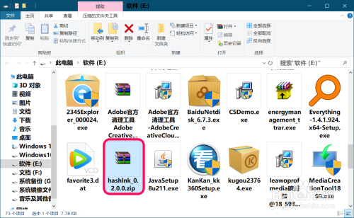 解压文件完当作后,我们找到解压后的 hashlnk 文件夹,点击打开;