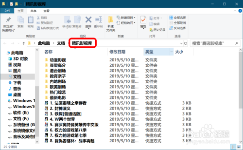 点击菜单中的【腾讯影视库】,可以打开腾讯影视库文件的目次。